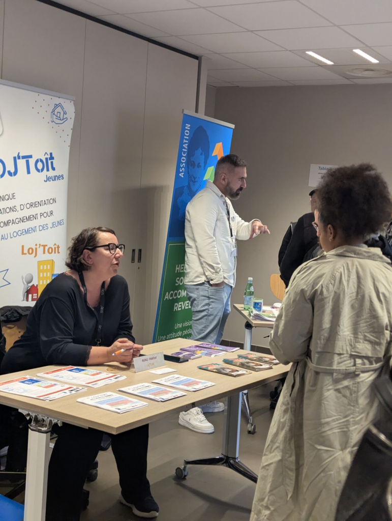 🤝 Nous étions également présents sur le forum avec deux stands dédiés, l’un consacré au FJT, l’autre au dispositif Loj’Toit. Ces temps d’échange nous ont permis de présenter nos outils, de répondre aux questions des partenaires et de rendre plus lisibles nos modalités d’intervention.